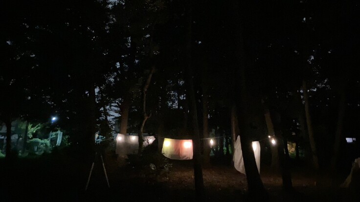 西深井散策の森では暗くなってからジャズ研の演奏を予定しており、ジャズ研に合う光を模索中です。今後も試行錯誤を進めながら2週間後の本祭には間に合うよう準備していきたいと考えています。