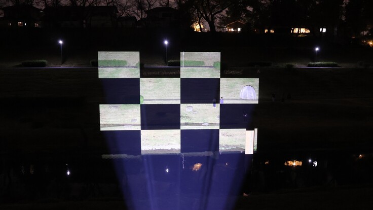 当日は運河に投影する簡単な図形が地形によって形を変えたり、新たな道を示す手がかりとして利用されたりすることを考えています。