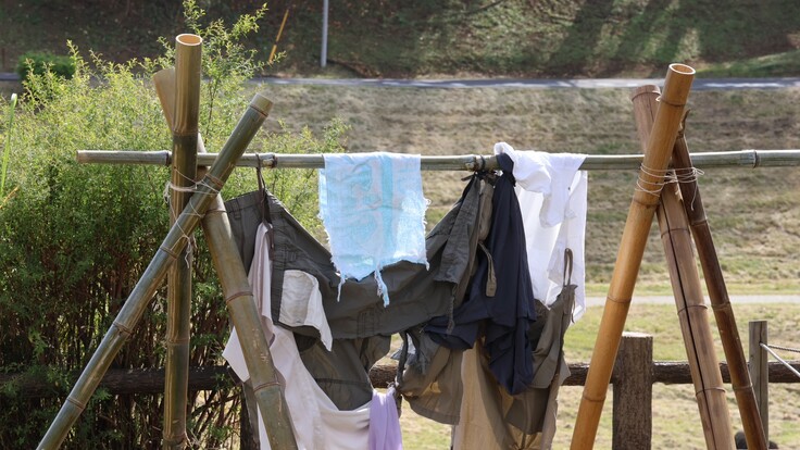 多くの方の古着や布を集めてそれらの表情を楽しむ作品です。