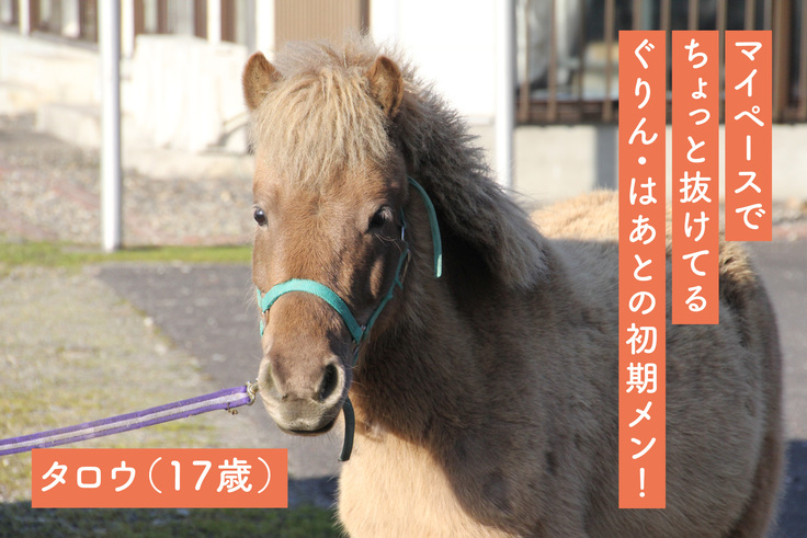 初めまして!ボクたちは、岐阜県本巣市で「NPO法人 心をつなぐホースセラピーぐりん・はあと」を運営する近藤さんご夫婦の元で、ホースセラピーをして活躍しているタロウ、クララ、くろまめです!
