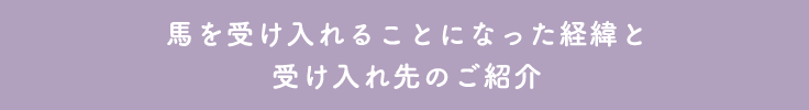 ボクたちは、近藤さんたちと仲良く駆けながら、十余年間を楽しんできました。ホースセラピーの仕事をしながら、いろんな子どもたちに触れあってたくさんの思い出もできました。ボクたちはまだまだ元気なのですが、近藤さんたちの体力が心配になってきたので、ボクたちと一緒に頑張ってくれる新しい家族を探していました。