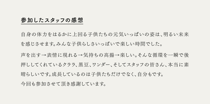 「子どもたちの変化や成長に関わる仕事ができ、一人でも多くの子どもたちの未来と幸せにつながれば・・・」という思いをもって活動しています。」