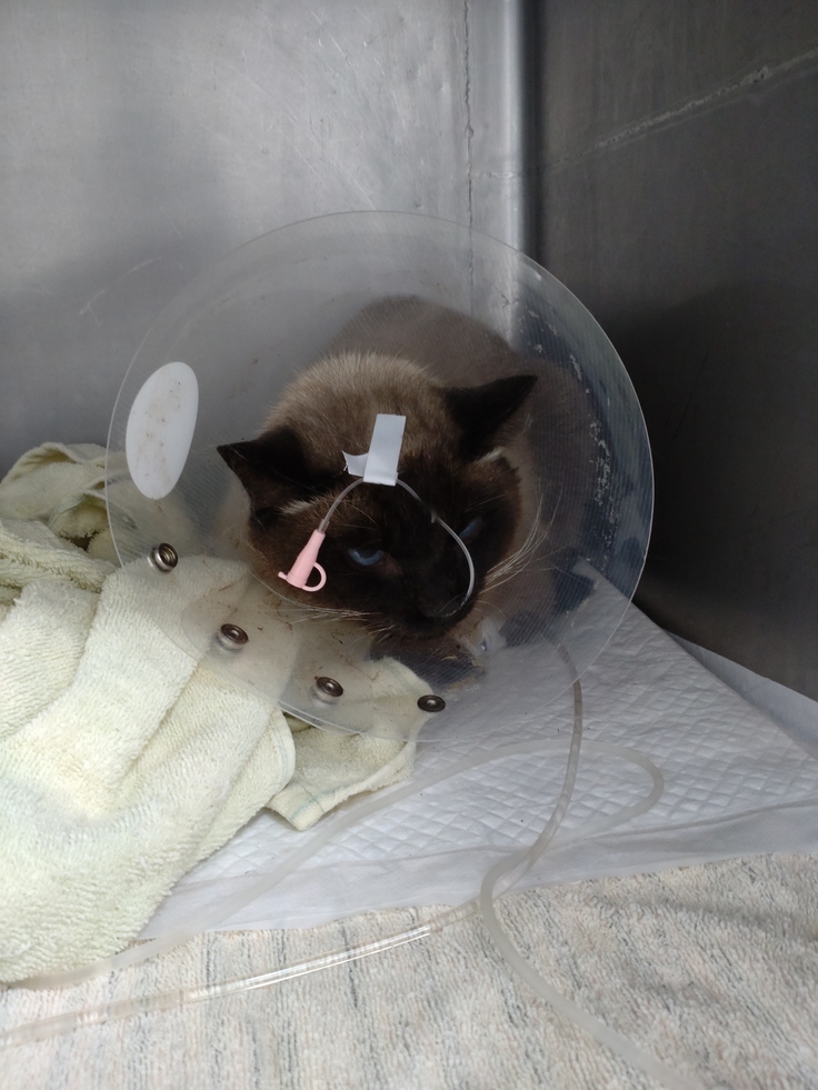 初めてのエリザベスカラーと鼻チューブで頑張りました。