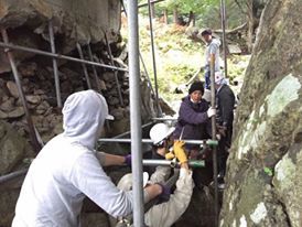 セメントを混ぜたり、鉄パイプで足場を作ったりと、