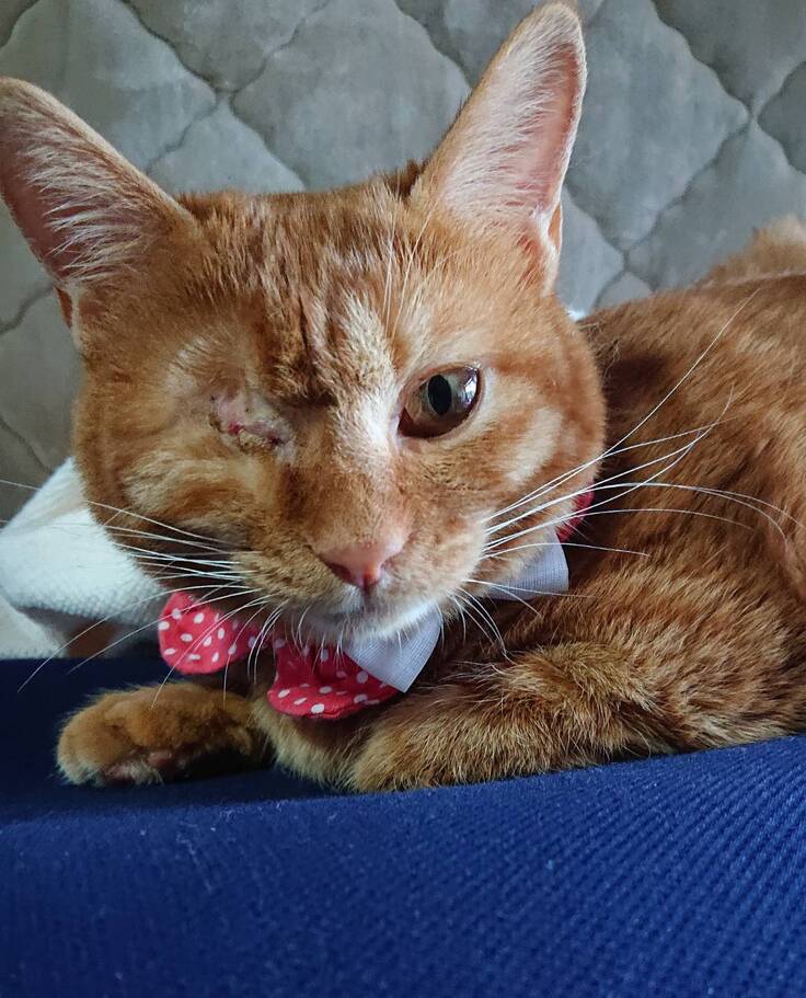 以前通っていた眼科では、手術後4週間で抜糸、さらに1週間後にエリザベスカラーが外れると言われていましたが、手術をしていただいた病院は術後3週間で抜糸とエリザベスカラーを外すことができました😸