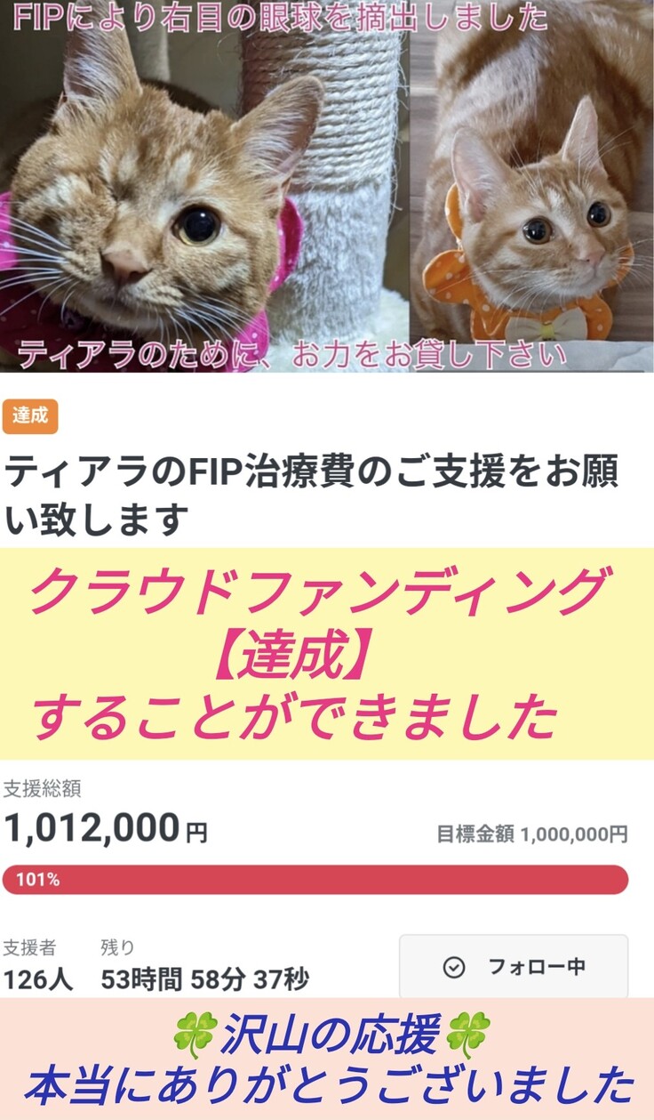 【FIP 猫伝染性腹膜炎】治療費のためにご支援お願いします!