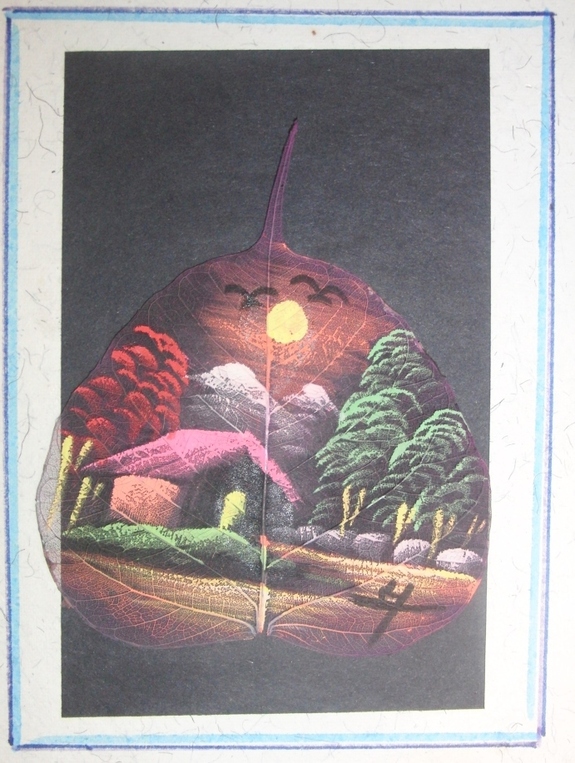 チベット難民が葉っぱに絵を描いたレターセット