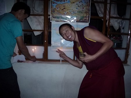 (ろうそくに火を灯す生徒。電力事情の悪い現地では、ろうそくが必須。)