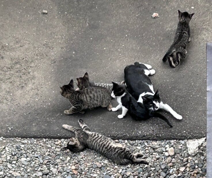 写真は、先週保護した子猫3頭とこれから保護予定の母猫と子猫2頭です。