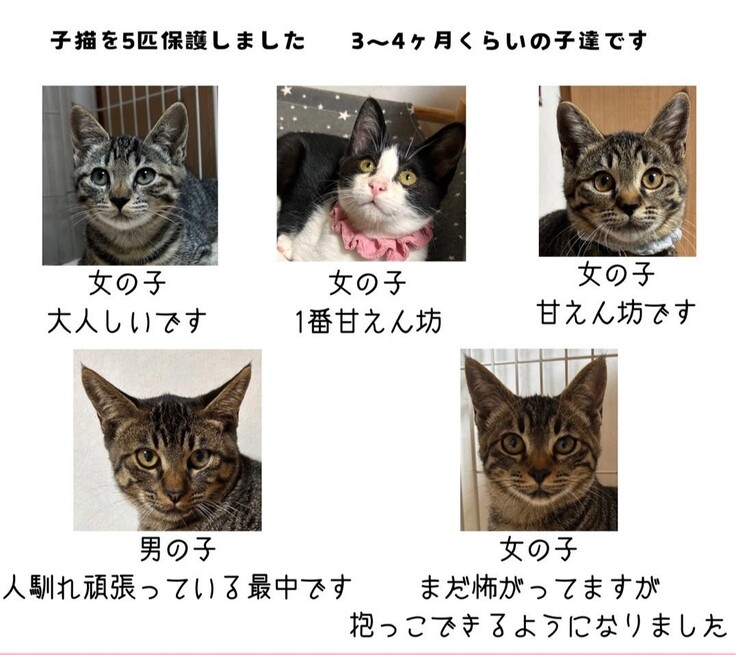 その野良猫たちを、今回ついに全頭保護することができ、母猫は避妊手術、子猫は飼い主さまの募集をしていくことになりました。