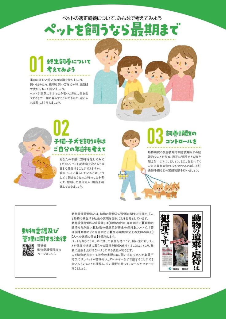 動物の飼養に関する適正な知識、そして、命を尊重する心が大切だと私たちは考えます。
