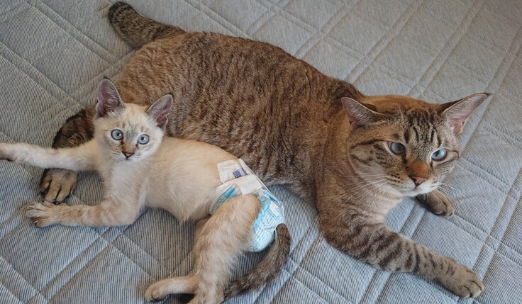 保護猫ホープと、同じシャム猫風・寄り目仲間で大の仲良し♪