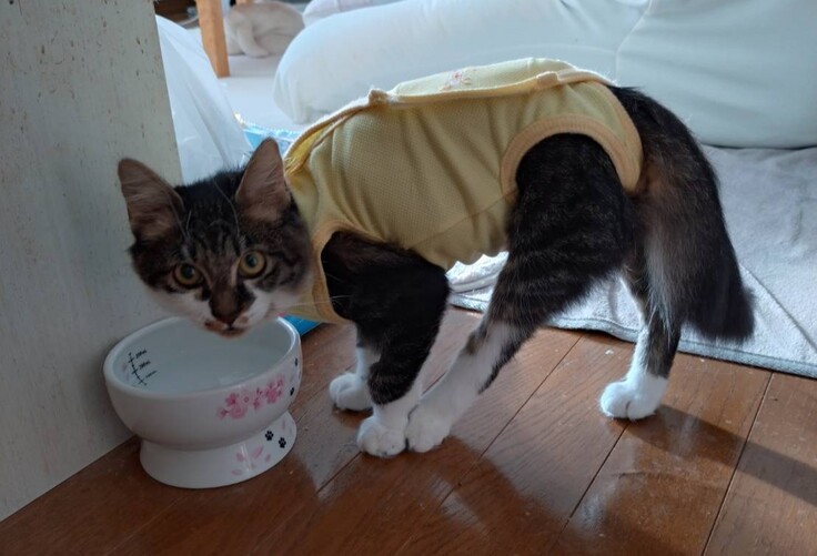 また、保健所収容時に事故で損傷していた3本の脚も順調に回復し、今は4本脚で立てるまでになりました。