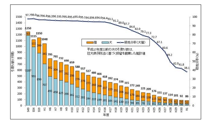 一方、保健所での引取り数は年々減っていて、殺処分数も急激な減少傾向にあります。