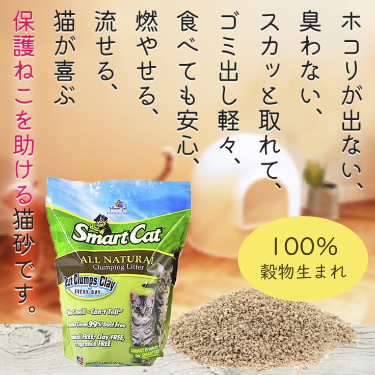 皆さんが快く、気軽に、そして継続的に保護ねこ活動参加できるような、身近な消耗必需品は……そうしてたどり着いた一つが今回のリターンである猫砂『スマートキャット』です。