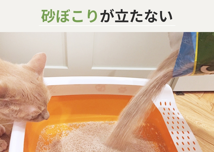 『スマートキャット』を勢い良くザーーッ!とトイレに入れてみましたが、全くホコリは立ちのぼりません。粒の小さい鉱物系はネコが好むので使ってやりたいのですが、ホコリが立つものが多いことが難点でした。 砂埃でお部屋は汚れますし、私自身も喉が弱いし、ネコの肺にも良くないのではないかと心配になるので、ホコリが立ちにくいのは安心できますね。