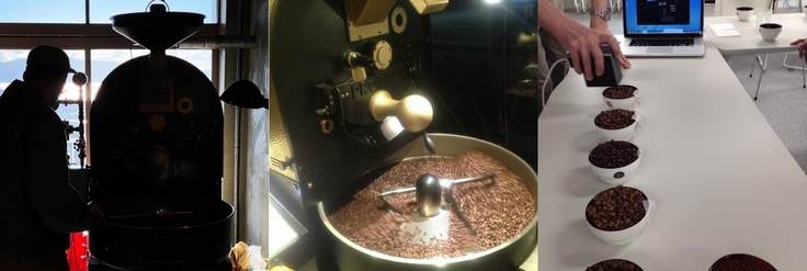 左はアメリカのLORING製の焙煎機。豆へのダメージを最小に、甘みと香りを最大限に引き出す焙煎に。右はドイツのPROBAT製の焙煎機。より味に厚み(コクや甘み)がでやすい焙煎機だそうです。 機械のそれぞれの良さを活かすように、その日の温度や湿度、気圧によってあらゆる調整をしながら、ローストをしています。