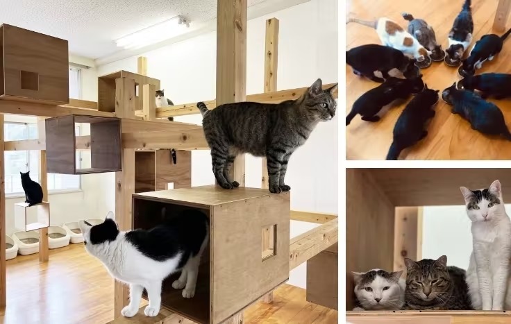 生徒として入学した猫たちは、新しいおうちへの卒業が決まるまでの期間を、友達と学校で暮らします。各教室に設置された大きなキャットタワーで遊んだり、お昼寝したりしながら、みんなでのんびり過ごします。