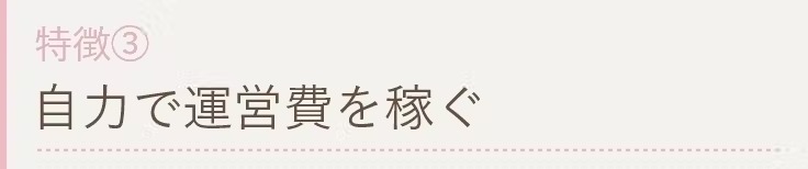 ボランティアや純粋な寄付だけに頼らず、できるだけ自力で運営費を稼ぐことを信条としています。