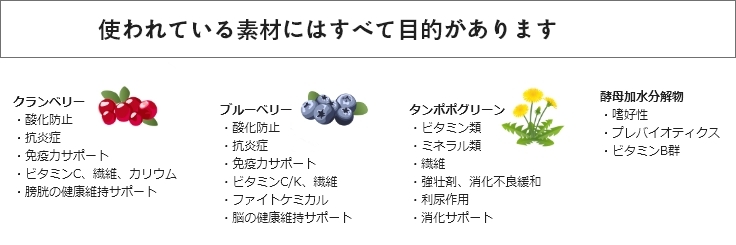 酸化防止としてクランベリー・ブルーベリーが配合されています。