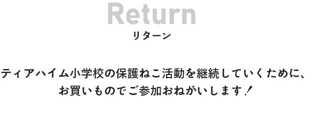 ティアハイム小学校は、寄付やボランティアなど、一部の人々の多大な負担に依存しがちだった保護活動から一歩進み、全国の猫を愛する皆さんにお買い物を通して保護猫活動に参加してもらい、「みんなで猫を助ける」運営を目指しています。