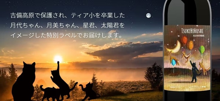 我が家では犬を飼っていて、猫は飼ったことがなかったのですが、義祖母が迷い猫を保護して飼っていました。そんな義祖母が施設に入所する際に、猫たちをティアハイム小学校に入学させていただきました。我が家だけでなく、迷い猫を保護している方や飼い主を探している方に、ティアハイム小学校が広く知られるようお手伝いできたらと、今回のプロジェクトに参加させていただきました。吉備高原のブルーベリーワインは、お砂糖を一切加えずブルーベリー本来の美味しさを生かしたワインです。甘い果実酒ではなく、ワイン好きの方にも堪能していただけるワインに仕上がっていると思います。行き場のない猫や事故が減り、幸せに可愛がられている猫ちゃんが増えますように!