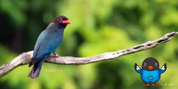 町のキャラクターはブッポウソウがモデルの「へそっぴー」。吉備中央町は、絶滅心配種であるこの美しい瑠璃色の鳥の一大繁殖地でもあるんです。(※へそっぴーの画像は吉備中央町役場より掲載許諾取得済みです)