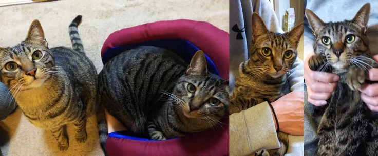 星と空(太陽)が我が家に来て1年がたちました。おうちに来てすぐは警戒心だらけでしたがさすが仔猫(^^) 2日目からは二匹で家の中で大運動会が始まりました! 先住の犬にも慣れ、犬のゲージに入ってくつろいだり。よく遊んで食べて寝て、今ではすっかり大きくなりました。仲良くジャレあったり、大運動会をしたりと毎日賑やかです(*^^*) なんと最近ではちゅ~るを貰う時お手、おかわり、タッチ(動画)までできるようになりました!! 幸せな卒業生がもっと増えるよう、クラウドファンディングの成功を心からお祈りしています!