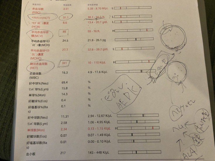 血液検査の結果、赤血球の数値が平均を大幅に下回っていました。