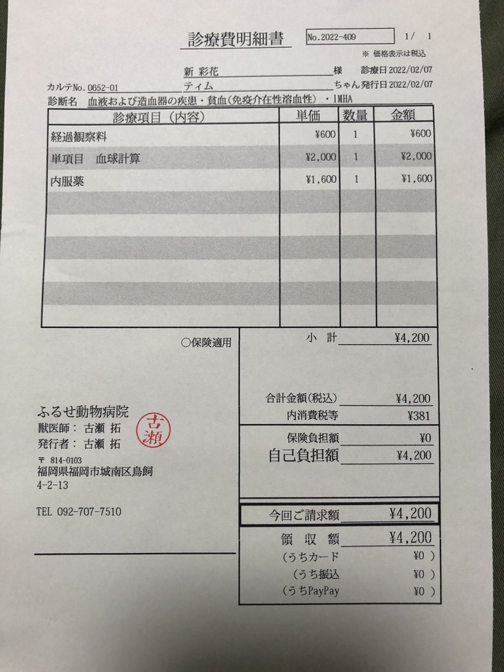 再生治療を受けて、一週間後の診察でした。この日は、血液検査をしてもらいました。