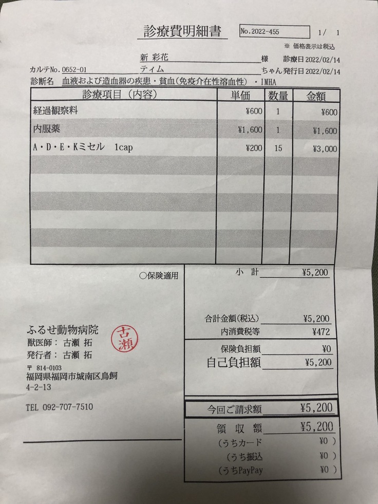 この病気は急に、容体が急変することがあるらしくて、ティムの様子(元気はあるか、舌・歯茎の色が白くなっていないか)をしっかり観察してあげることが大切だとアドバイスを受けました。