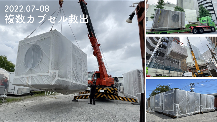 追加救出は7月初旬に急遽決まりました。「解体待ったなし!」という状況だったため、A606に先行して2022年7月23日から8月にかけて、とにかくできる限りの複数カプセル救出を行いました。