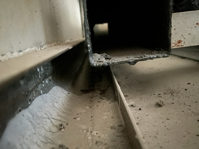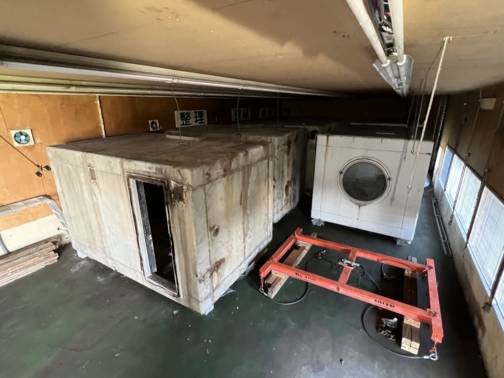 私たちは解体業者さんから説明を受けた上で、できる限りのアスベスト除去を希望しました。下部の鉄骨フレームをカットしてもらった上で、ドライアイスのブラスト装置で除去工事をしてもらいました。