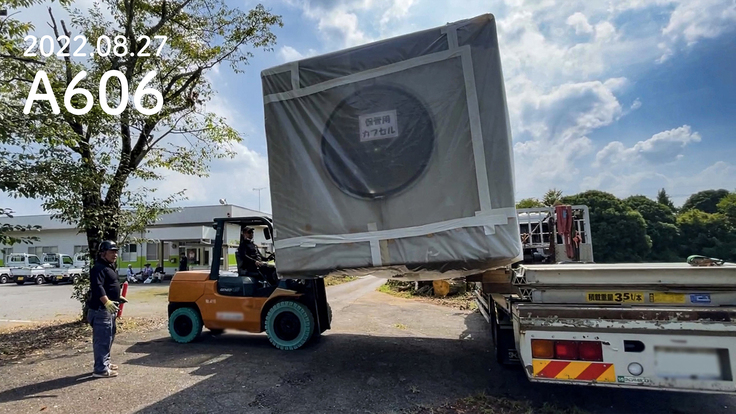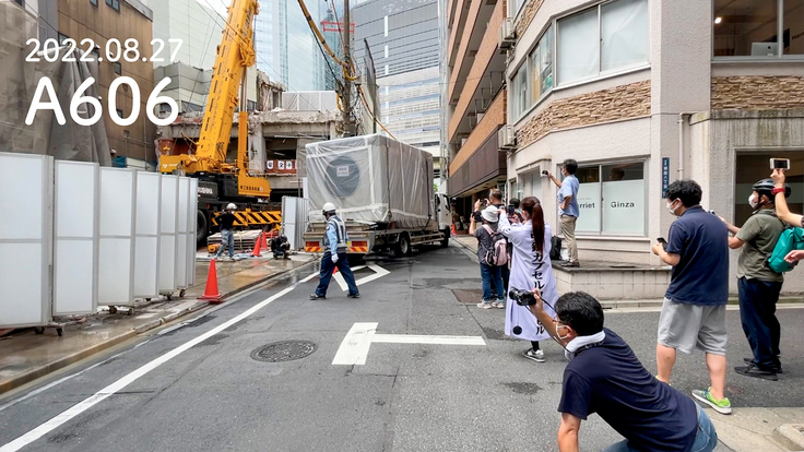 カプセルA606は、2022年8月24日にA棟のシャフトから取り外され、8月27日に多くの方々に見送られる中、カプセルA606を銀座から北関東の倉庫へ私たちは運びました。