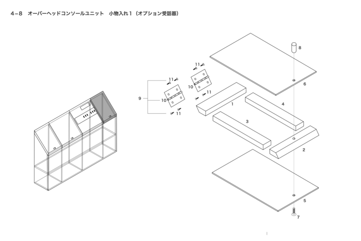パーツリストの一例。オーバーヘッドコンソールユニットの小物入れ