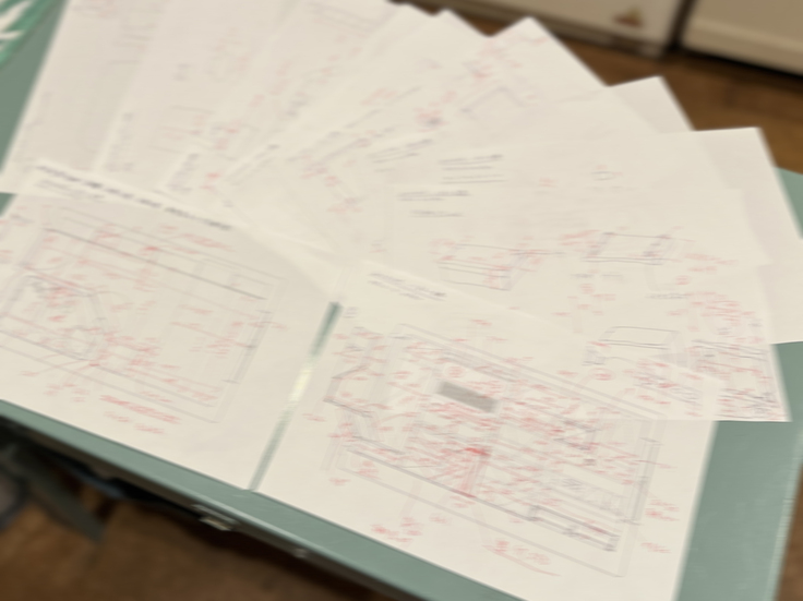 2時間という限られた時間内でできる限りの実測調査と写真撮影を行い、実測調査の野帳は10枚になりました。(野帳の写真にはぼかしを入れました)