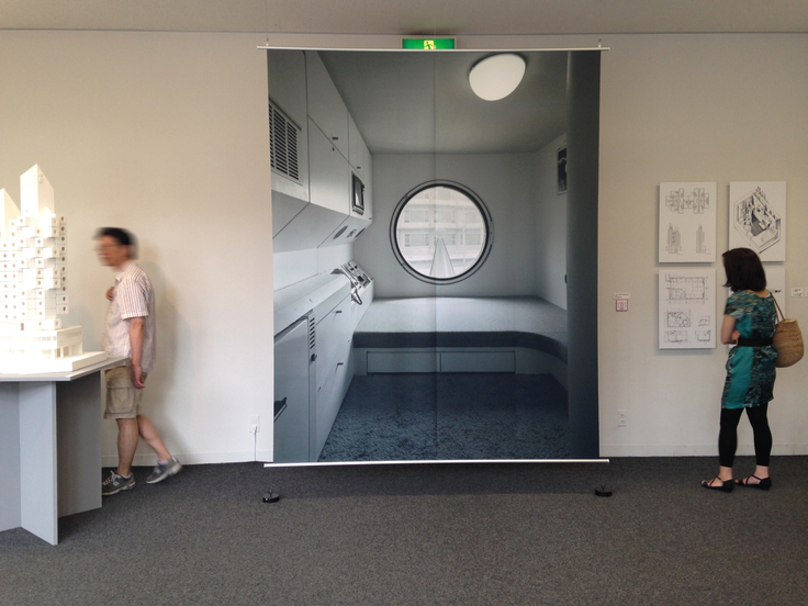 2014年夏には、埼玉県立近代美術館で開催された企画展「戦後日本住宅伝説ー挑発する家・内省する家」で中銀カプセルタワービルについても展示されていました。当時、私はすでに中銀カプセルタワービルに住み、使用していたため、展示を見て不思議な感覚でした。