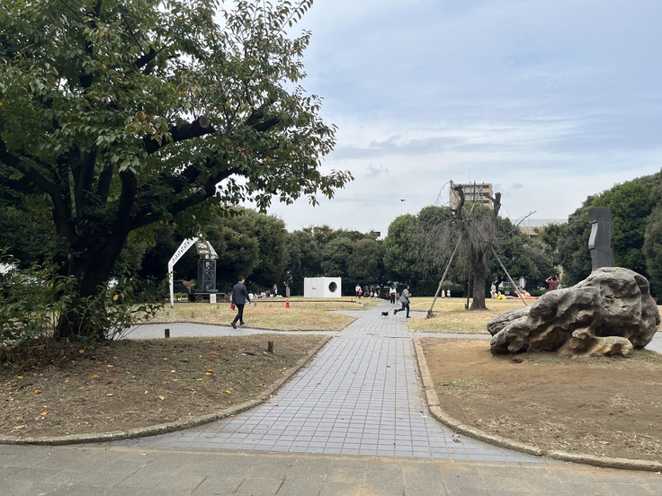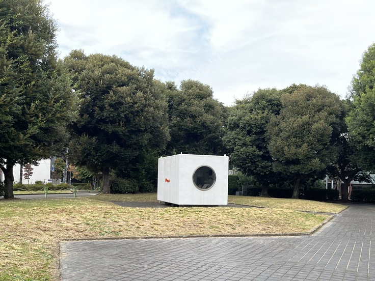 埼玉県立近代美術館が建つ北浦和公園内にある屋外彫刻と一緒に展示され、外からなら誰でも眺めることができます。実測に伺った日も平日ではありましたが、子どもから大人まで、たくさんの人が公園を楽しんでいました。