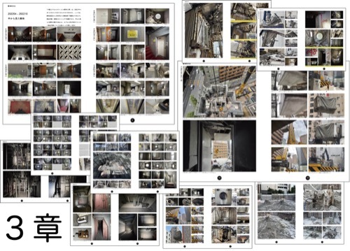 1章では「外から見える解体」として定点観測の写真を中心にまとめていますが、3章は「中から見える解体」としてまとめています。