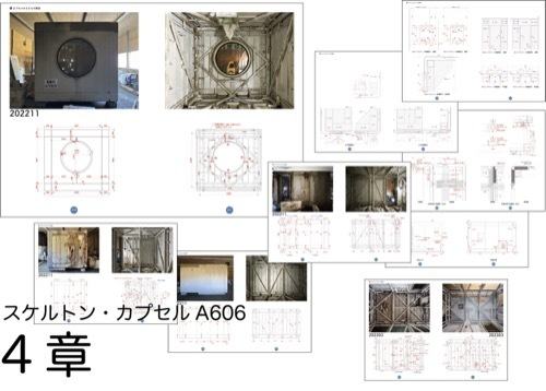 「4章:カプセルA606の救出」については、スケルトンカプセルのA606の実測調査をディテールの図面も作図してレイアウトしています。