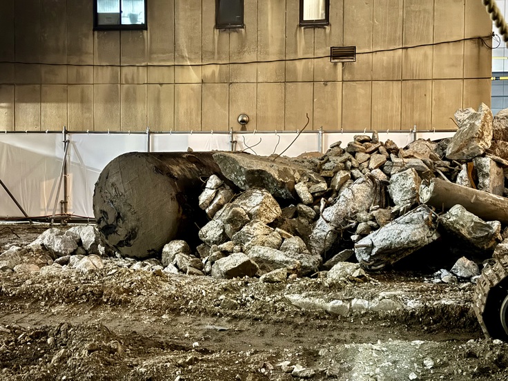 その後、2024年8月に残っていた地下を解体する工事が始まり、その後も地下解体工事として作業が続いています。