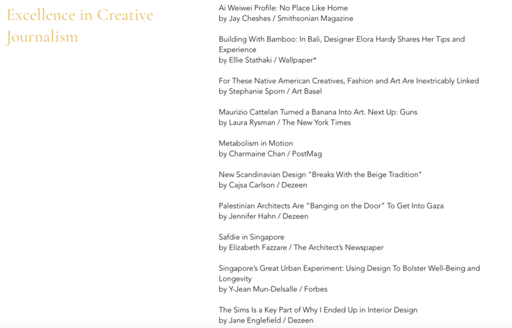 また、記事がCreateurs Design Awardsの"Excellence in Creative Journalism"にノミネートされたとChanさんから連絡がありました。おめでとうございます。