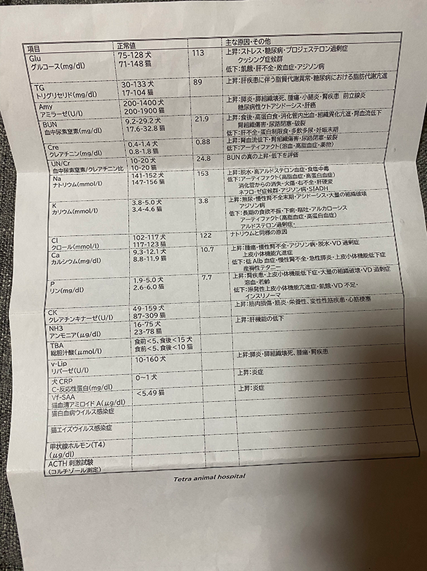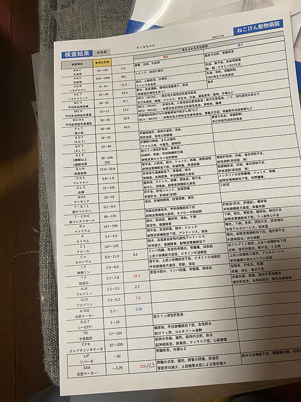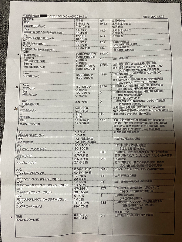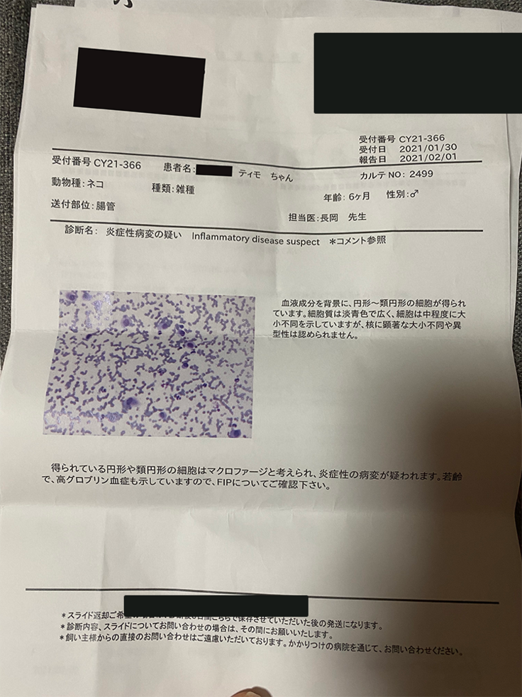 血液検査の結果、数値のA/G比からみて、ほぼFIPドライタイプで間違いない