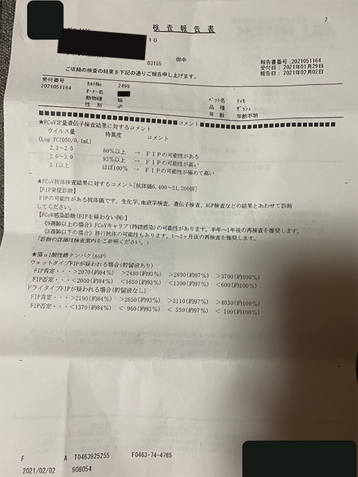 出来れば再度、FIPの検査をしたほうがいいと言いたいけれど