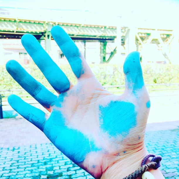 今日も、一人ひたすらスポンジで板を塗っていました。