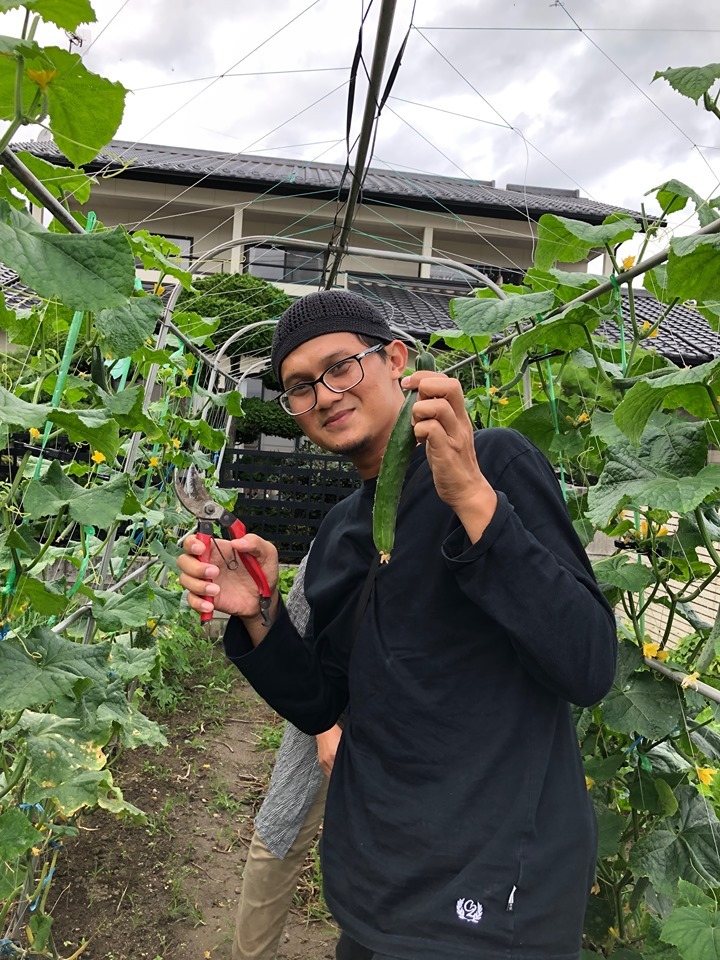 Yさんのご自宅でハムザがきゅうりもぎ体験!