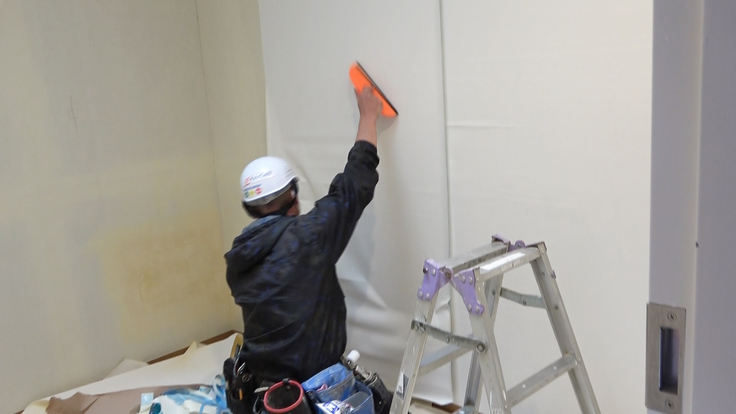 職人の方が床やクロスの張り替えを、とても丁寧に進めてくれています。