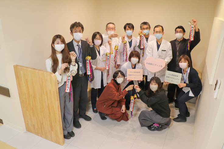 ICU家族控え室改修プロジェクトは、2021年に実施した「#病院にアートを|患者さんとご家族が笑顔になれる緩和ケア病棟へ」のクラウドファンディングの残金を活用して改修したため、セレモニーには緩和医療科の医師にも参加してもらいました。