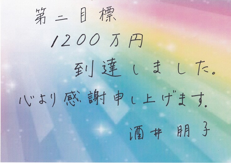 320人を超える多くの皆さまのご支援により、第二目標の1,200万円に到達することができました。