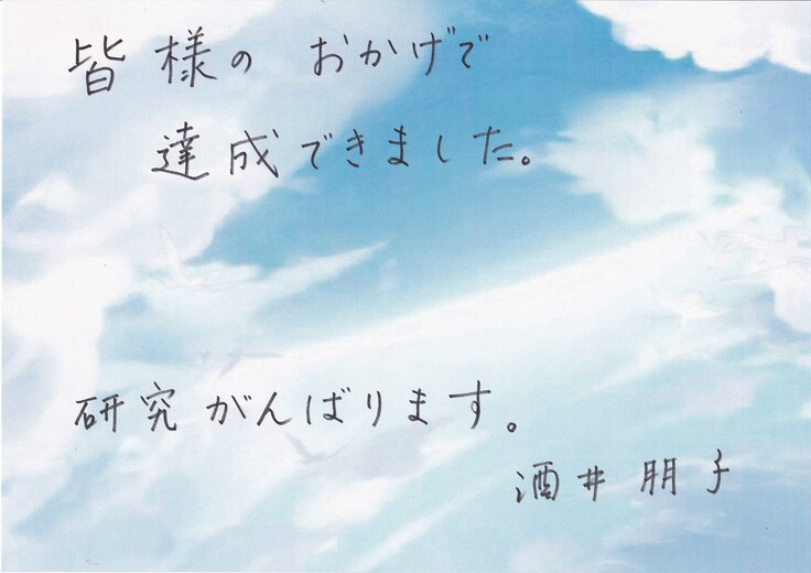この後は皆様への感謝の気持ちを糧に、低侵襲で持続的に痙縮をコントロールする治療法の確立のため、しっかり研究を進めていきたいと思います。